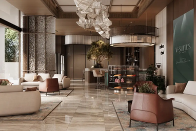 This is a boutique, design-centric residential tower nestled in the heart of Business Bay, blending sculptural Venetian motifs with modern functionality. Rising across 19 storeys, the building houses 227 fully furnished apartments—from compact Executive Suites (studios ~477 sq ft) and Signature 1BR suites (~700 sq ft) to spacious 2BR Sterling Suites and 3BR duplex villas (~2,831 sq ft)—each crafted with interiors by Venetian Enrico featuring smart kitchens, floor-to-ceiling glazing, and branded European fixtures. Residents enjoy a curated lifestyle package branded The V Club, which includes an open-air cinema, spa with ice plunge, infinity-edge pools, Zen gardens, co-working studios, meeting rooms, wellness zones, and rooftop lounges—all designed to foster both relaxation and productivity.